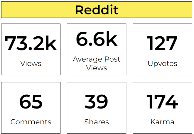 For my first month being on reddit, I’d say this is a pretty good. We got over 73 thousand views on the posts, which is crazy numbers. Granted, our data is pretty skewed because one post went pseudo “viral”, getting 69,000 total views. Wild! I’m excited to see where it goes from here.