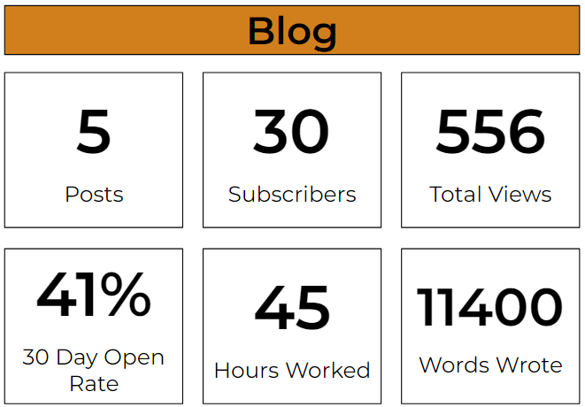 Overall, this goal is still in the struggle phase. I haven’t quite figured out how to drive subscribers from the Twitter to the blog. So, here’s a great area for further exploration and trial and error (see that connection to our topic above). This month I tried to vary my post lengths which didn’t totally make any magical impacts. I failed to use more statistics, but I did end up pinning the weekly blog post every week which helped get it more interactions.